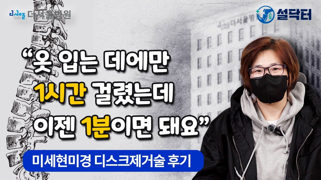 [2] YouTube · THE 설닥터 - 더서울병원 의학TV - 옷 입는데 1시간이나 걸렸던 환자의 허리디스크 수술 후기 더 ... (https://www.youtube.com/watch?v=fB1Vi86ygk0)